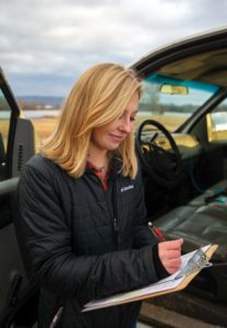 Brittany Hansey is surveying: